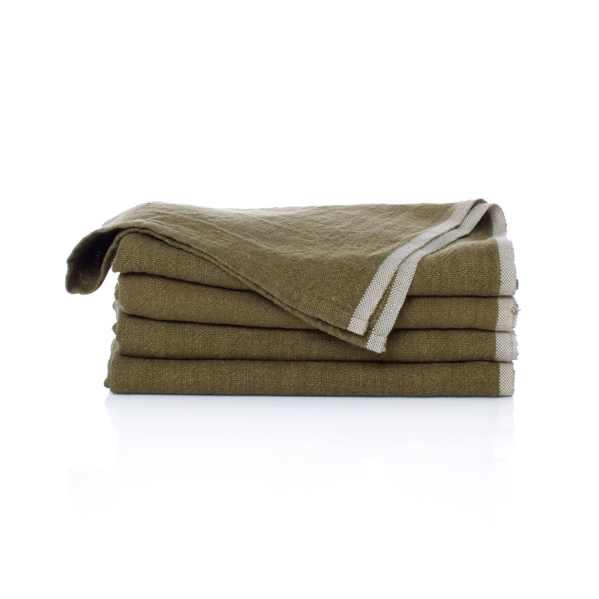 Handmade from chunky linen, the Foret Napkins carry a natural, earthy presence. Their rich forest green tone and subtle texture evoke a rustic elegance, bridging modern simplicity with a nostalgic French spirit. Ideal for both everyday use and elevated table settings. Sold as a set of four.